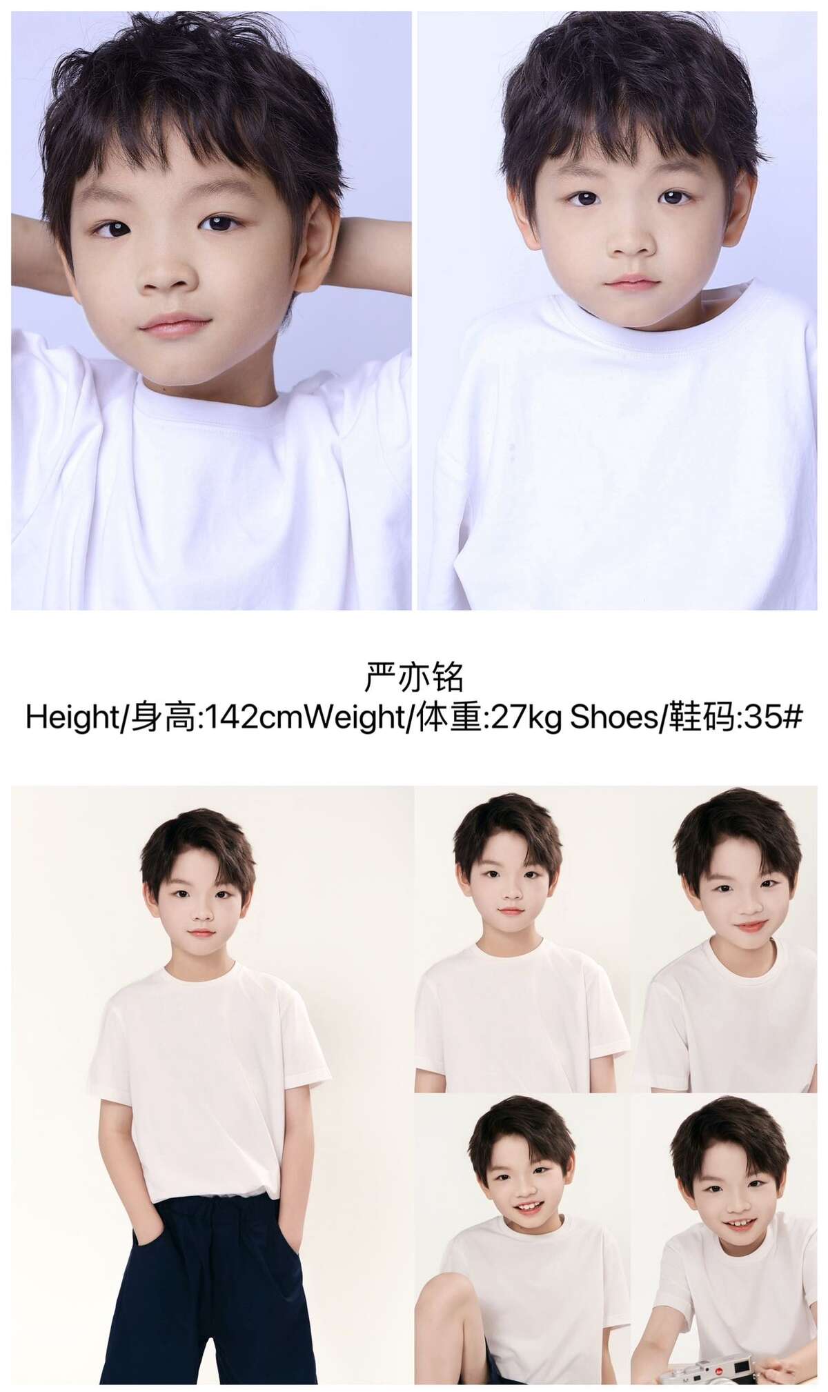 严亦铭142cm 27kg 江浙沪 上海 / 上海儿童 身高:140cm 体重:30kg 鞋码:35码 演员库 10月1日 编辑 月佑Casting 取消关注 关注 私信 模 卡 自我介绍 暂无PDF资料 给TA打赏 共{{data.count}}人 人已打赏 上海儿童
