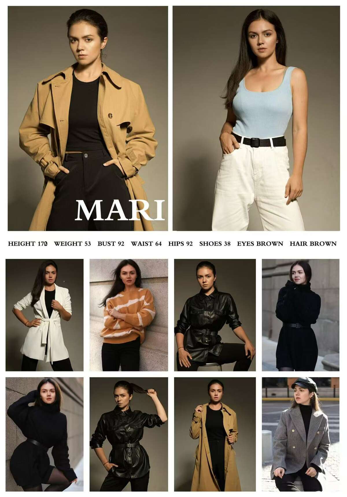 MARI170cm 53kg 92-64-92 38码 江浙沪 江浙沪 / 江浙沪青年外籍 EYES:BROWN; HAIR:BORWN 编辑 取消关注 关注 私信 模 卡 暂无PDF资料 给TA打赏 共{{data.count}}人 人已打赏 江浙沪青年外籍
