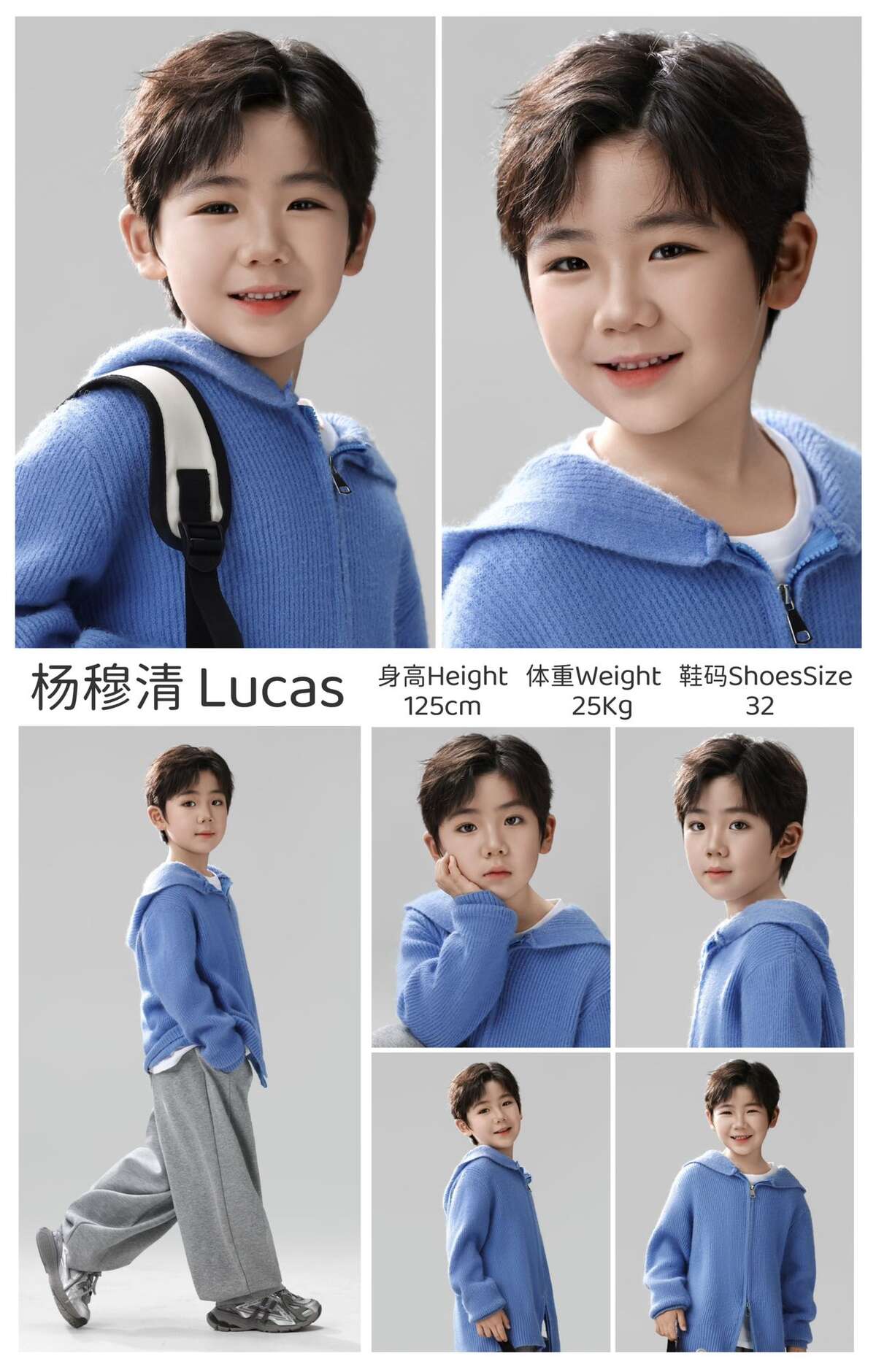 描述:配合度超高的宝,长,记忆力好,记台词动作速度快。会武术,打戏可拍;擅长哭戏。发量超多 、大眼睛、双眼皮,超长睫毛,风格可萌宝可霸总。不挑戏、能熬夜、能吃苦、不矫情。